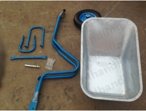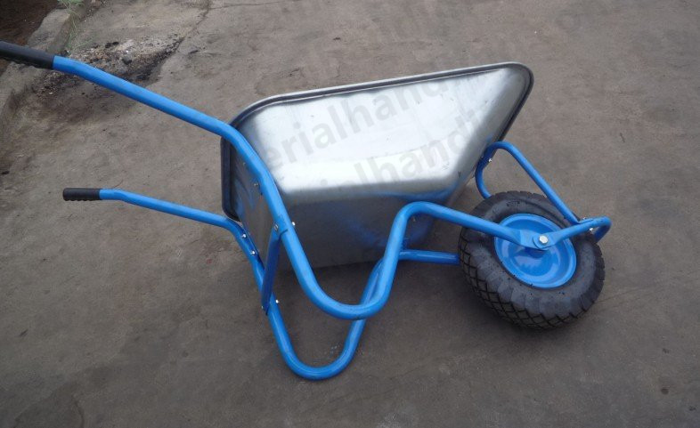 Galvanise Tray Wheel Barrow 1.Model: WB5009 2.Water capacity: 72L 3.Sand capacity: 5CBF 4.Load capacity: 200kgs 5.Wheel: 16''*400-8A