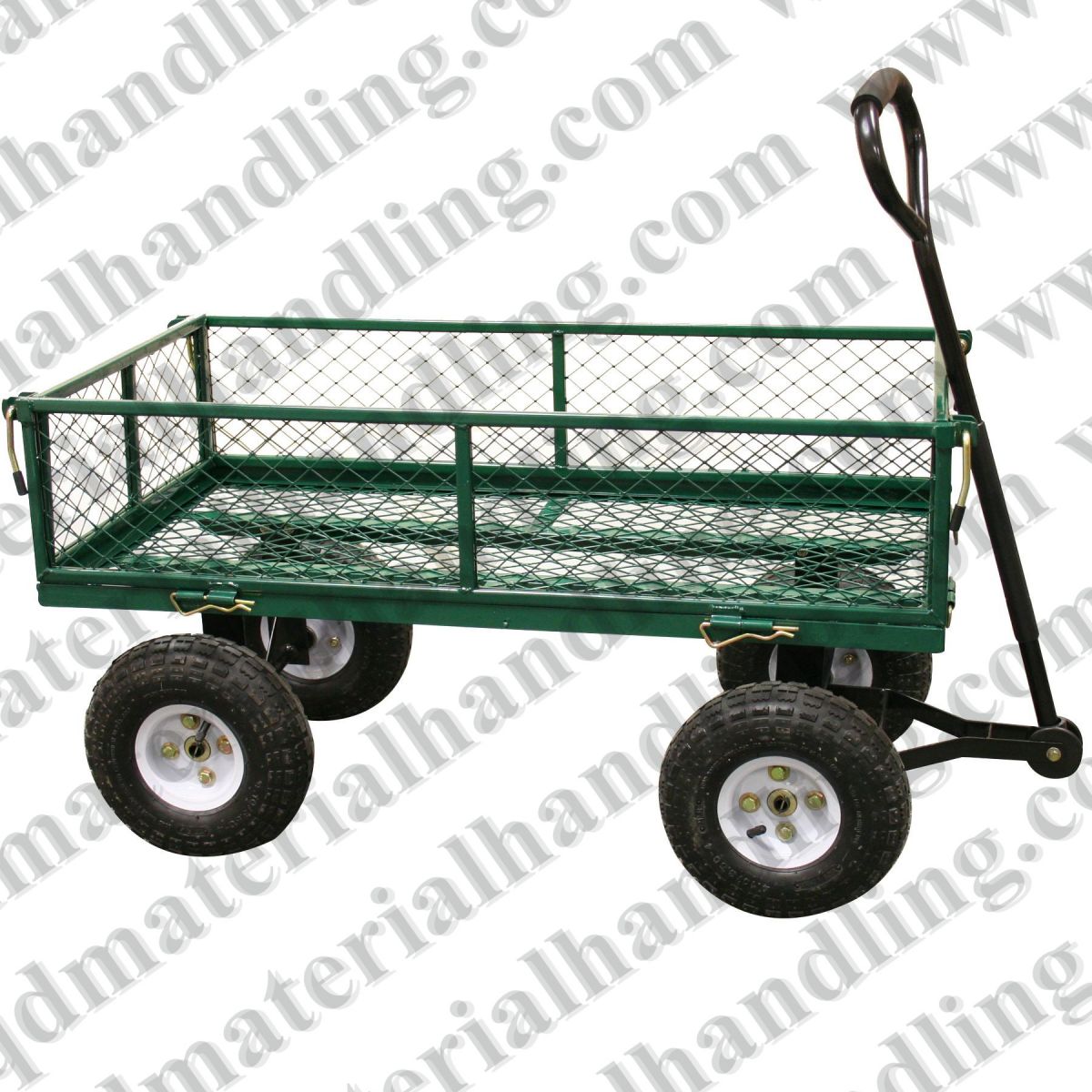 Get work done around the garden faster with this Garden Utility Cart. It's ideal for lawn and garden project hauling and can handle up to 800 lbs. Its steel mesh deck and removable sides make this cart durable and versatile enough to tackle any garden or lawn project you may have. This cart is a great value to haul things around the yard, including the kids.