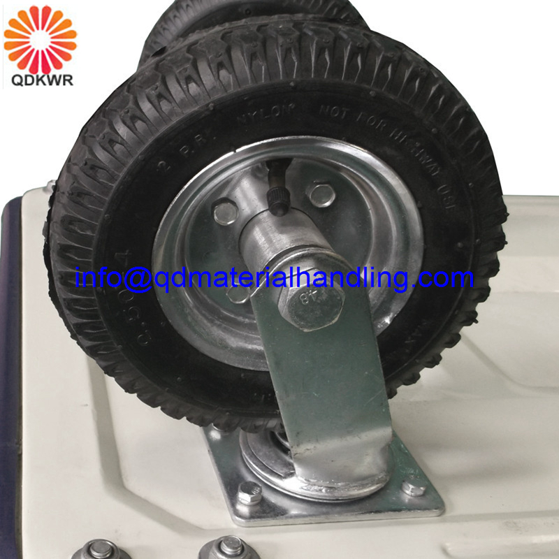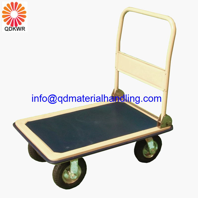 Country of origin ChinaCapacity 300.0 (kg)Item Measurement Capacity 300KG Bed Length 915mm Bed Width 615mm Overall Height 895mm Base Height 315mm Wheel Size 200mm Pneumatic Wheel Type 2 Fixed & 2 Swivel Different dimensions of the cargo compel us to come up with these or other ways of moving, especially for massive objects that suggest a call to a crane. However, conventional truck platform, foldable or welded and winch can work wonders. For example, how to move the shed new grinder, quite heavy, delivered to the gate of your farmstead in a passing car and unloaded your joint efforts, a neighbor and a driver?Take a cart on two wheels, lowering its farthest edge of the platform to the ground, suspended from the winch handle, clings to its rope machine, run, wait, when the load is pulled up onto the platform, turn off the winch and put the platform horizontally. All you can carry an object anywhere on the rope and can not disengage, let it be some insurance. Even better, if you have a platform truck with lift platform, if any at all, you will not know the troubles in the process of farming.Hand trucks, platform - what may be possible?Let us determine which truck needs you may need. In the construction and repair work - is transport bags and cans of paint , but as a rule, at a time more than one bag and a pair of tanks with water-based caramel spend tricky, so you will have enough and a small two-wheeled platform at 250 pounds.If you - the owner of a large farm, and you need to make hay stacks, and fruits from the garden have to take out almost tonnes, need a big truck cargo platform with 3-4 wheels coated porous rubber, up to 1000 pounds. Handcarts inflatable wheels - not the best option, they tend to lower the air at the most inopportune moment.When it comes to a large warehouse, whether in farming or trade, will be invaluable assistance to the hydraulic lift, better self-propelled, ideally with a platform for standing driver.This kind of platform truck, characteristics which provides a considerable margin, may have an electric motor or internal combustion engine using diesel or gas fuel. The first option is especially valuable for use in warehouses, the second - only in the open air, because of the emissions, and the third is quite acceptable in all conditions and is considered environmentally friendly.Pedestrian stacker platform - all for your convenienceSometimes it is difficult to provide that will have to carry - compact bags, or a whole bundle of firewood logs. In the first two cases, the goods did not bother you, the third option would mean some inconvenience if the handle perpendicular to the truck platform, that is vertical, and the logs stacked along the heavily sticks back and makes you stumble.Testing the relative ease of handling trolley you only if the handle is positioned at an angle of 45 degrees to the platform. Even better, if the handle is used rod freely change position from vertical to horizontal and back, this design allows for necessary and pull and push carts, platform hand.As for the convenience of the means of movement of goods, it is the variety of options makes it difficult to choose from. For example, the same cylinders must be transported in the same position, preferably nearly vertical, but specialized truck is not suitable for other types of cargo, except that the bag can be transported in the same way, and that one.Place an order now please kindly contact