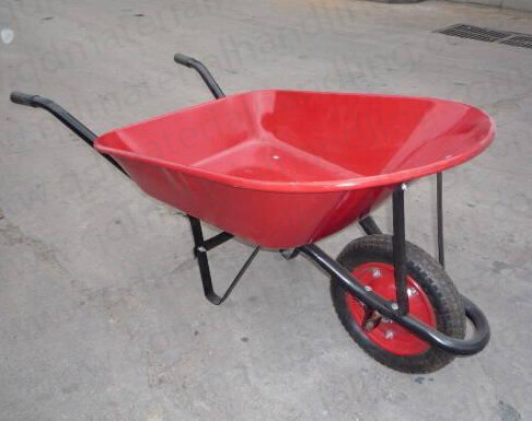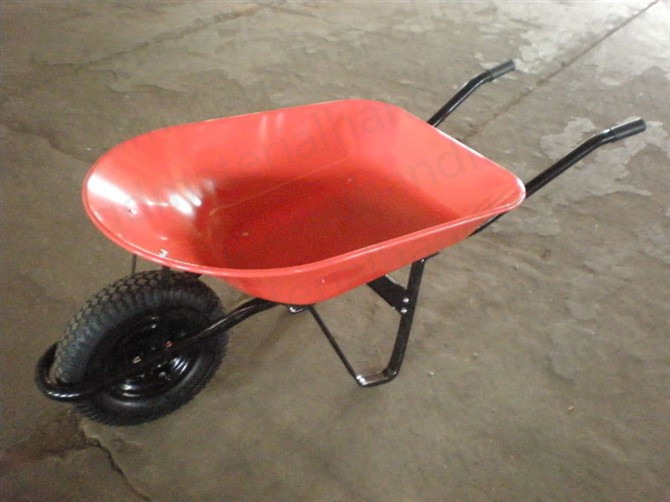 China Manufacturer of Metal Tray Wheel Barrow WB7200|Construction wheelbarrow︱Builder wheelbarrow︱Heavy duty wheelbarrow WB7200 Galvanized or Powder coating steel tray, thickness 0.70mm (option: 0.70mm-1.00mm) Three parts tubular steel handle with PP grip ( 32× 1.2mm/1.5mm) Powder coating on all resist rust for extended life, UV resistance & lead free 13" rubber wheels, steel rim, axle brackets